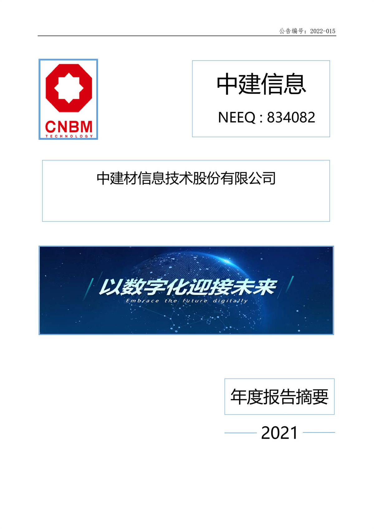 中建信息2021年年度報(bào)告摘要