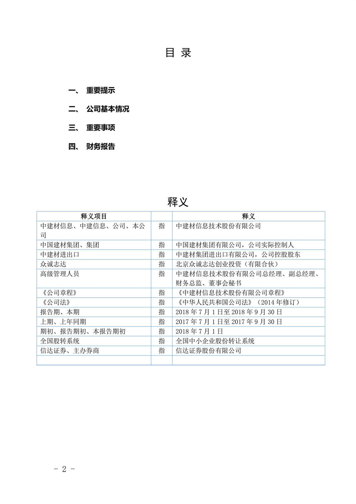 中建信息2018年第三季度報告